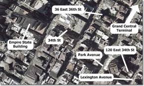 This long-time home of Ayn Rand, in New York, is particularly worth visiting for a reason I'll cover later. In my personal pilgrimage around Manhattan, I made this my first stop because it's very handy to get to if you've just tried to emulate Tom Hanks at the top of the Empire State building.I never usually carry a camera when visiting such important places, as I normally want to simply hold and enjoy the moment in my memory, but here's a satellite photo I managed to dig up.Situated between Park Avenue and Lexington Avenue, the building sits on that part of 34th Street which begins a gradual descent into the East River, which I could see sparkling in the distance on a brisk sunny day, without a single cloud in a flawless blue sky. I counted about 18 floors to this rather non-descript red-brick block; Ayn Rand lived in Apartment 6G. Fortunately, however, I wasn't allowed to go any further than the green awning, which reached to the kerb, as a sign on the front of the building was quite clear about the point.