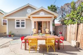 Fully fenced back patio. A detached 120sq ft cottage with sofa bed can be rented at an extra charge for a little more space. Washing machine, dryer and dishwasher available to use. Recommended cleaning service available for hire. Travel crib and foldable twinsize cot available if needed. Just a block from LA’s oldest park, this sunny bungalow is close to nature trails and playgrounds. Walk 2 blocks to a favorite coffee house or 15 minutes to a greengrocer with fresh seasonal produce, dry goods, and delicious prepared foods. The residence is close to the center of Echo Park with family-friendly restaurants and shopping within easy reach. It is 30 minutes from LAX by car. This Echo Park bungalow in the heart of LA is ideal for a small family. It includes a small office, well-equipped galley kitchen, open dining and living room with sofa bed, full bathroom with bathtub and 2 bedrooms, including a kingsize bed and queensize bed. Outdoor courtyard includes 2 dining tables and lounge chairs.