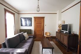 I wasn’t feeling the gray options, didn’t want white, and the only other colors at IKEA were red and purple. Add a bunch of wood trim and wooden furniture though, and YAWN. I like the Hemnes bookshelves in the room, and the Blake media console (that I picked up at the C&B outlet for half off) looks great. The Eames chair looks kind of lonely and out of scale against the wall right now, but I think it will look good in the room once everything comes together a bit more.It’s just kind of there. The sofa is floating in the middle of the room because I’m playing with the idea of putting a console or low bookshelf behind it for the kids’ toys. The rug was in the nursery, in the last house, and it’s a little small here. The coffee and end tables are OK, but only OK. The brown glider (also formerly in the nursery) is definitely not staying there, and it’s blocking a toy table which is weirdly shoved in a corner of the room. The room definitely needs paint, and curtains.