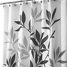 recommended that you rely on product packaging or manufacturer information. Give your bathroom an instant update with this lovely InterDesign Leaves Shower Curtain. Based on original, copyrighted art, it lends a unique new look to your space. This 72" x 72" shower curtain is made of highly constructed water-resistant polyester. The ring placement openings are also reinforced to maintain strength and shape, even with long-term use. This InterDesign shower curtain is available in different fun designs and colors, so you can choose the ideal match for the rest of your bathroom interiors. It is also offered in different sizes. InterDesign Leaves Shower Curtain: Fabric and design printing process help to make the curtain shed water very quickly 72" x 72" shower curtain made of highly constructed polyester Liner and shower hooks not included Polyester shower curtain is available in various colors and sizes Shower ring placement openings are reinforced to maintain strength and shape InterDesign shower curtain is based on original