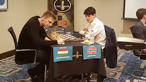 I don’t remember the summer as being a quiet time for chess – but that is because I tend to think like a spoiled spectator these days. For those in the stratosphere designated by the 2700 watch list, the start of the season seems to have an air of holiday about it, while it is a time of explosive activity for mortal players in more mortal events. But I tend to want to watch the heavyweights play. One of the few big stars in action recently made a significant leap up the charts in a rather mysterious event, the made for TV but not yet televised Checkmate TV show, which is modelled on the format of the classic BBC Master Game. Matt & Patt engine Tarjei Svensen somehow even managed to find some game scores from the tournament, no mean feat considering they have been keeping them quiet with a goal of a more dramatic broadcast – though the program does not yet appear to have a distributor. The second edition of Checkmate TV was won by Hungarian youngster Richard ‘The Rocket’ Rapport, who built on his recent victory in an exhibition match against David Navara with a majestic 8/9, ahead of Rodshtein and Short, a result which catapulted him up to 17th in the world.