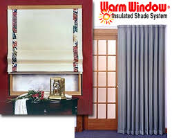Comfort and SavingsWarm Window shades combine fashion and function while considering your needs for comfort, styleThese insulating curtains dramatically reduce heat loss through windows making any room comfortable and cozy allWhen closed, Warm Window insulating shades darken rooms during the day making any room ideal for daytime sleeping. insulating capacity also reduces noise pollution from outsideYou can combine Warm Window with a decorator cover fabric to compliment, contrast or match your decor. you prefer the crisp tailored look of a Roman shade or the easy operation of a side-draw shade, Warm Window insulating shades will enhance the appearance of any room. multiply by adding other window treatments such as draperies, cornices, valances, swags or shutters. usually responsible for the greatest amount of heat loss in your home-even if you have storm windows or the newer dual pane thermalAs a result the window covering you choose has a tremendous