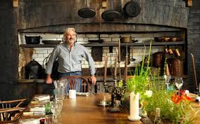 My bedroom was vast, eccentrically shaped and soothingly comfortable. Again, it was like a friend’s house, if only friends had such good taste in floor coverings and linen. I woke up to sunlight blasting through the Elizabethan window’s stone mullions, putting Hutson’s signature bath-in-the-bedroom feature into silhouette. And at seven, a workman began an insistent banging on a pipe. Nail guns started their work and dump-trucks whined and churned. Last week, The Pig was still a building site. Downstairs, cheerful wait staff rehearsed for Monday’s opening – it was like a movie set with extras milling about while men with clipboards took note. • The best hotels in Dorset Robin Hutson got inspiration in Devon from sitting by the Otter with a Cohiba and a glass of red.